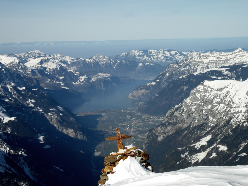 Zum Jahresbeginn hat mich die Arbeit wieder eingeholt, so dass ich weniger auf Skitouren war als geplant. Immerhin konnte ich mit dem Urner Bergführer Walter Fetscher und Mauri Ceotto die „Gewaltstour“ Bristen endlich einmal machen. Mit einem Aufstieg von 2300 Höhenmeter (von rund 700 Meter über Meer auf über 3000 m.ü.M) war ich schon ziemlich am Limit. Während 6 Stunden spurten wir (bzw. Walter Fetscher) mit den Skis hinauf und am Schluss mussten wir noch durch Pulverschnee kraxeln und stapfen. Und das alles im Schatten des gewaltigen Bristens.