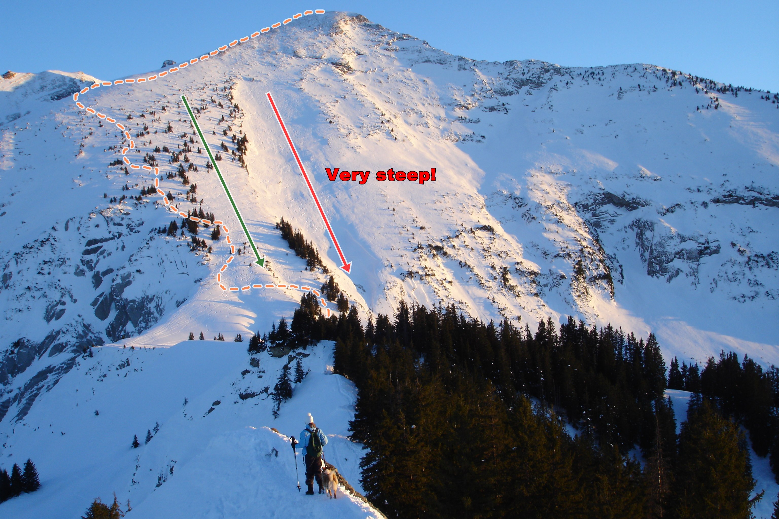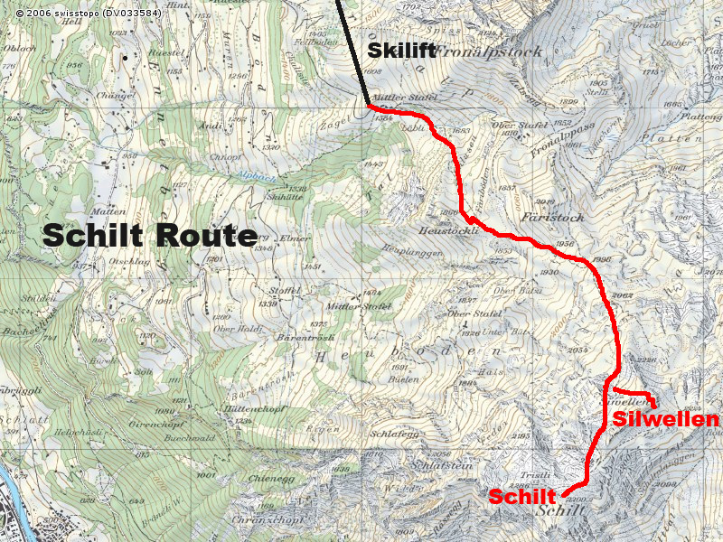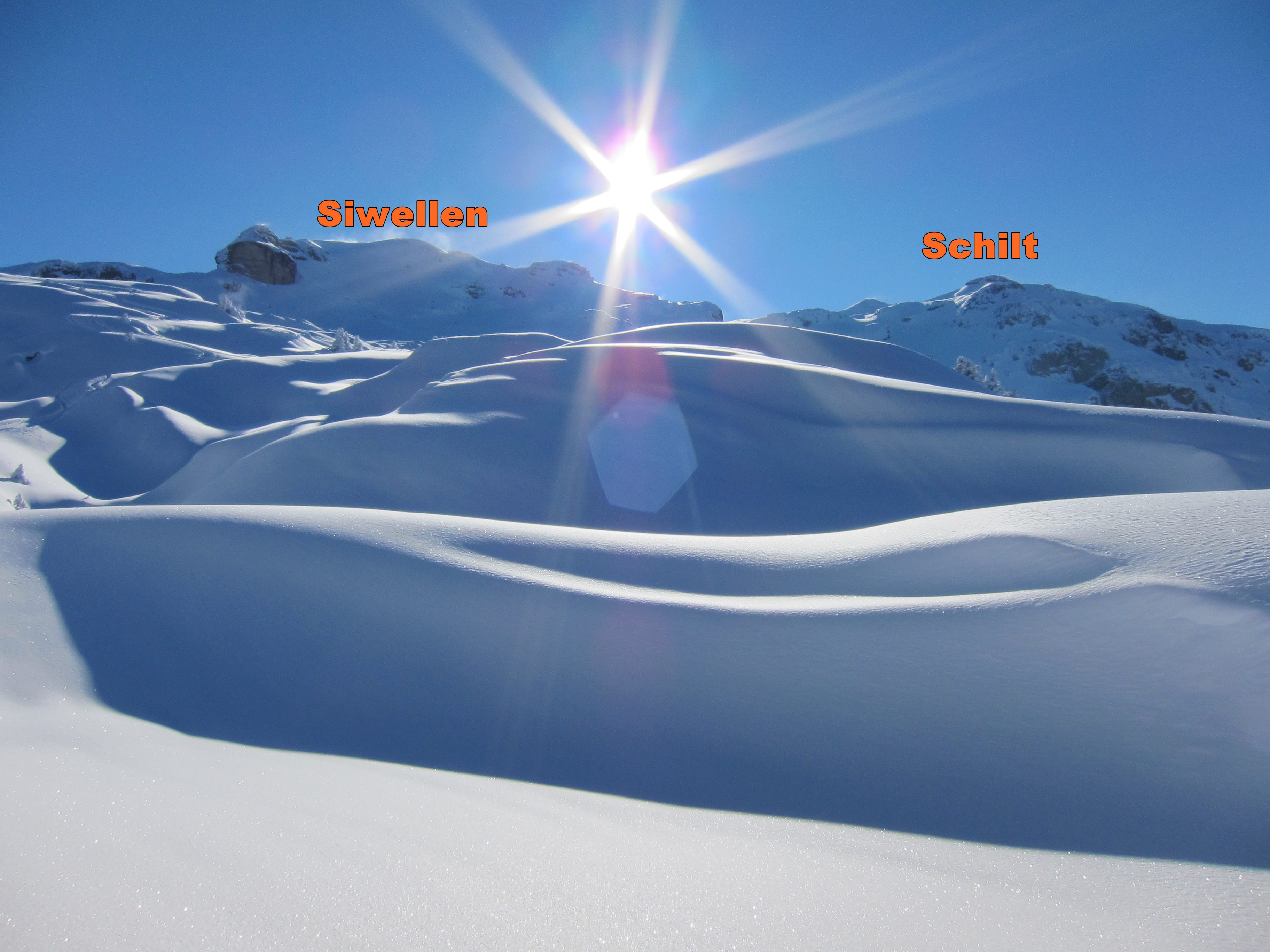 The slightly higher and much steeper Siwellen (just North of Schilt) offers the same views and much better downhill skiing (in safe conditions). I certainly prefer that peak to the Schilt.