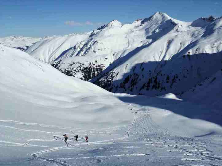 When heading towards Monstein you can – if you still have energy left – again climb up to Erezberg (2616m) and ski down one of the best (and least skied) off-piste slopes in the whole region.