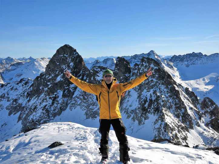 On top there is a sweeping view of the Silvretta moutains all the way the 4000m Bernina.
