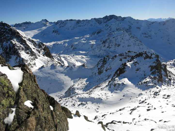 This is clearly one of the best tours in the Eastern Alps with a total of 2000m descent if conditions are good and safe and if there is enough snow down to Klosters (1100m)! I will just mention here the “usual” route which differs significantly from route 560b (starting from Pischa Horn) on the offical ski tour maps.