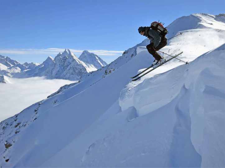 Gatschiefer Tour (2000m downhill), G! on my map, route 650b (more or less), epic ski tour with 2000m descent from Pischa to Klosters, 4-5 hours, not too difficult, but needs safe avalanche conditions (several people even with guides got caught in avalanches on this tour). You need to skin up twice (about 350m each) on this tour. Please note that you should go well equipped (physically and equipment-wise) on this fairly long tour. Tour report with tour map here.