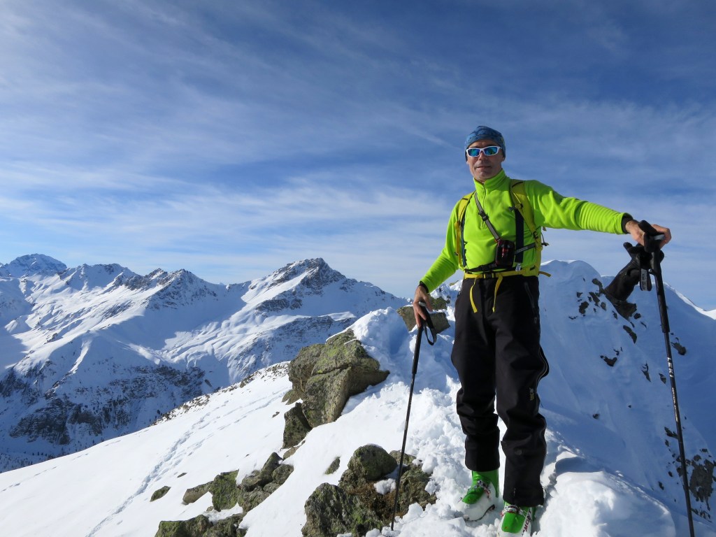 Der Aufstieg ist mit Ausnahme des steilen Gipfelhanges recht einfach und angenehm. Man folgt dem Felabach am einfachsten auf der nördlichen Seite und biegt dann in das Tal Richtung Südosten ab. Vor allem im Hochwinter ist der ganze Aufstig im Schatten. Der kurze Gipfelhang ist recht steil (35 Grad), so dass hier die Lawinensituation zu beachten ist. Ist man dann auf dem Grat, hat man eine herrliche Aussicht und man kann westwärts noch auf den Gipfel kraxeln.