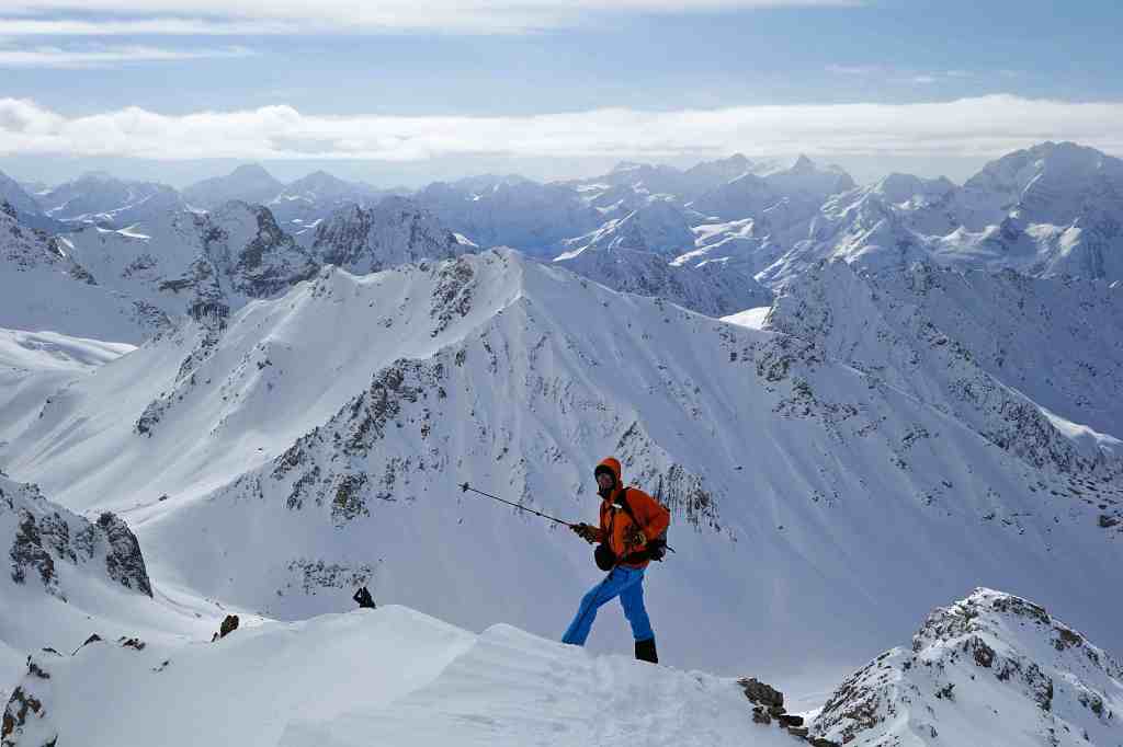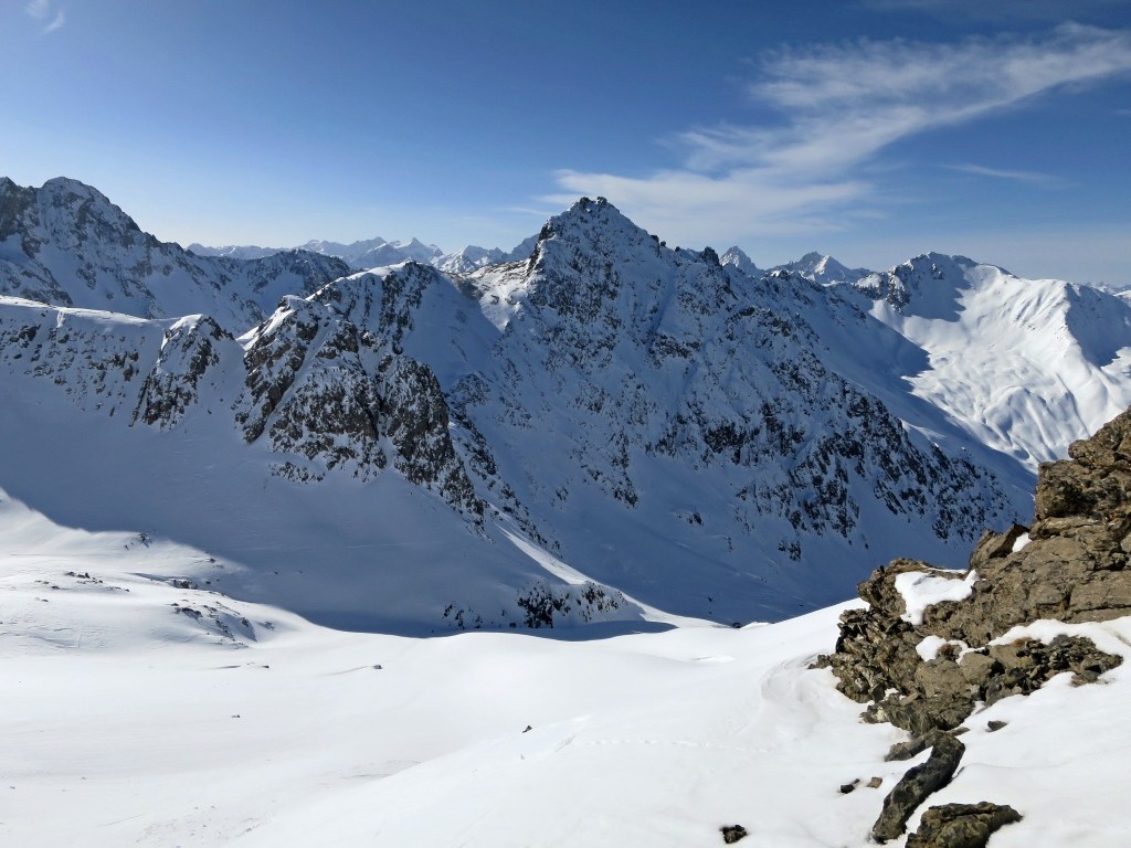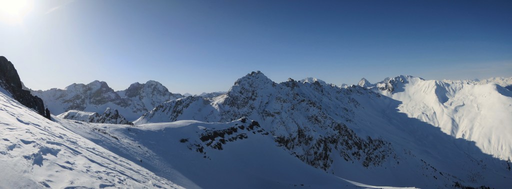 We skied the Southwest face all the way down to Inneralpen. Despite the warm weather and relatively little snow (in early February 2020) we found great virgin powder almost all the way down. Colleagues on that day skied the North couloir which was also great.