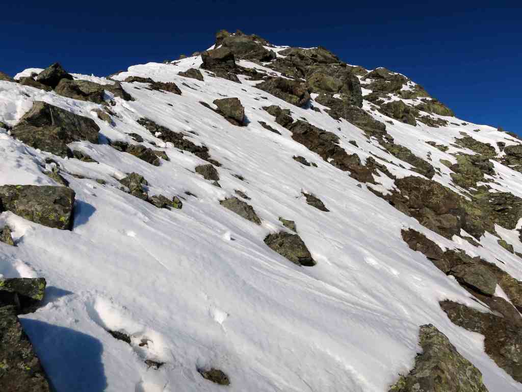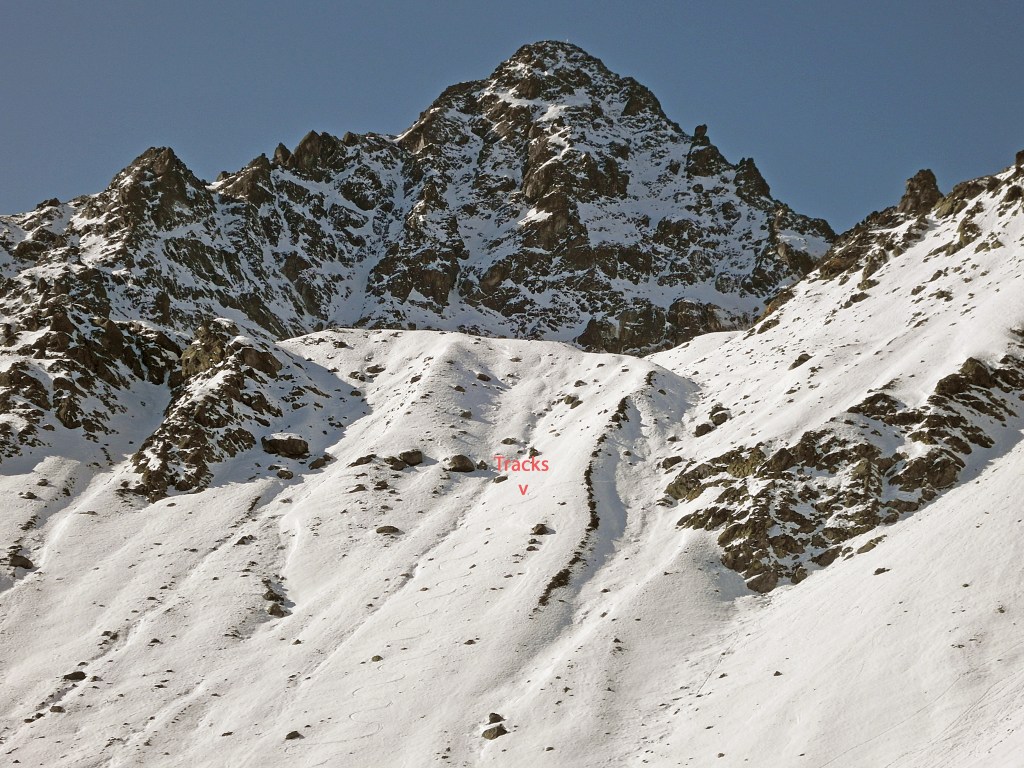 The car can be parked at the Flüela Pass parking lot. From there there are pretty steep slopes leading to a valley just North of the higher Flüela Schwarzhorn. Then head North towards to peak skinning up the steep South face. As this is slope is sun-exposed it is usually to safe to climb. The final ascent can be made either by heading North over the East ridge or directly on the South ridge where the ski depot is made and one climbs over a few rocks to the peak.
