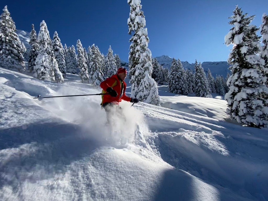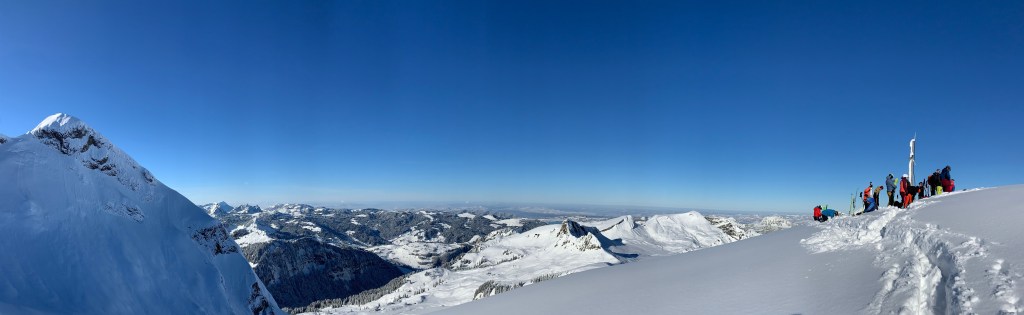 After an exceptional snowfall in late November 2023, it it cleared up for a day. With half a meter of good powder, snow conditions everywhere were excellent all the way down to 1000m. In fact, there was almost too much snow for ski tourers who did not have the ultra-wide skis. We enjoyed a great day at Rütistein (close to the Hoch Ybrig ski area) with many other outdoor enthusiasts.
