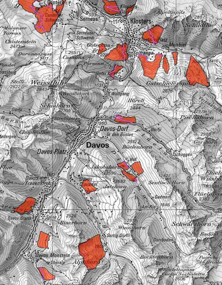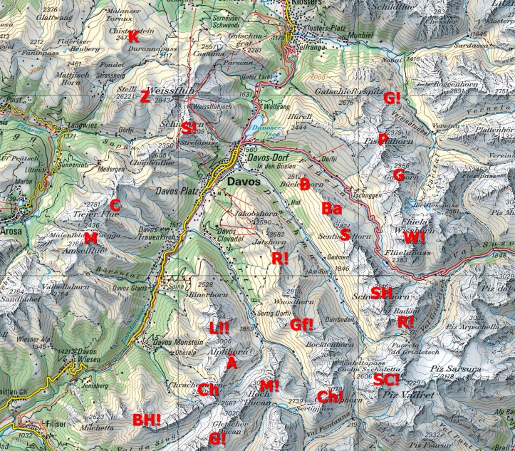 Part 1 covers the peaks West of Davos (upper left part of the map above)