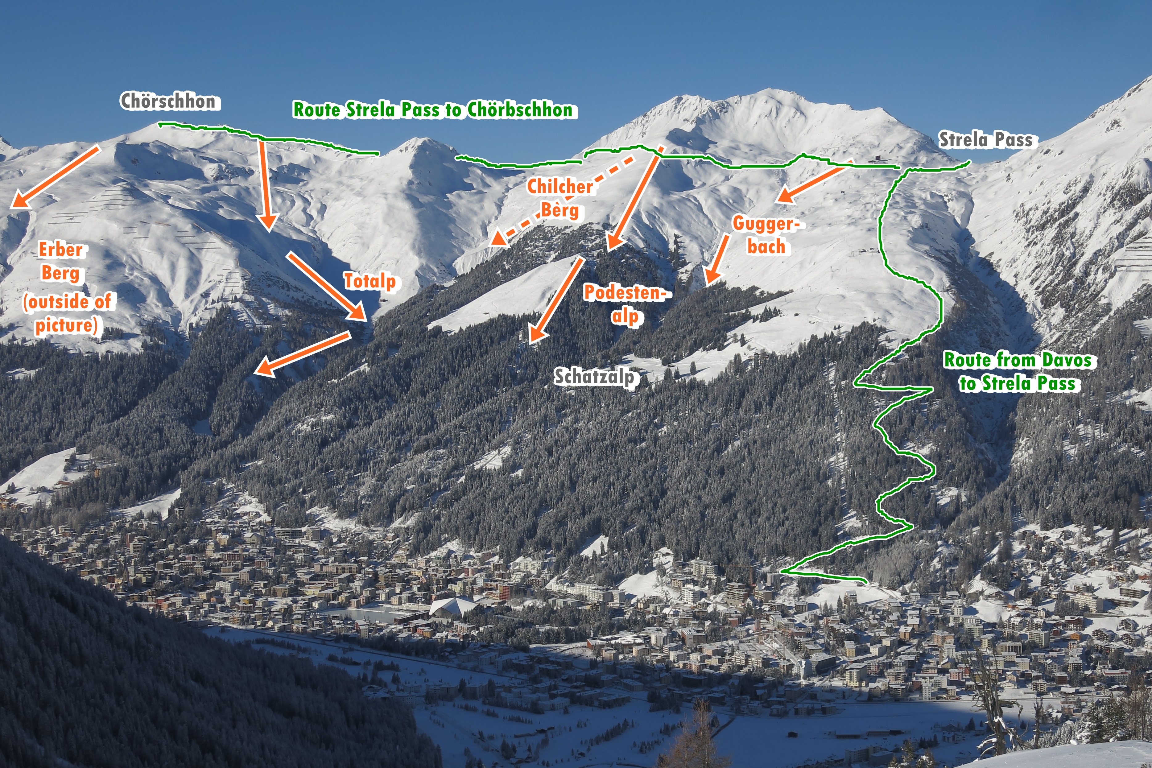 Also check the easily accessible short tours and powder descents between Strela Pass and Chörbschhorn: Powder Descents to Davos (between Strela Pass and Chörbschorn)