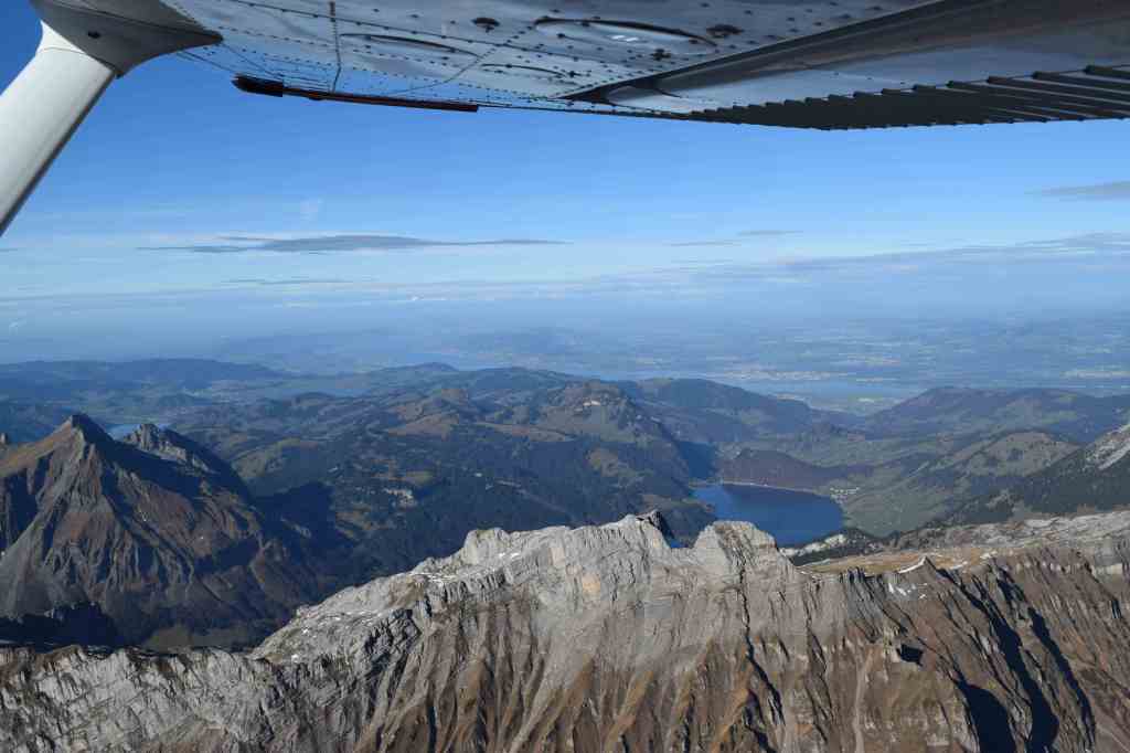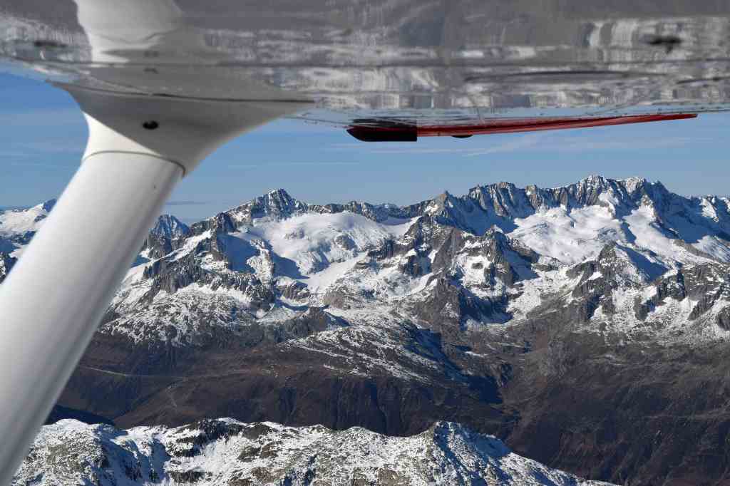 I had the opportunity to fly with Ronnie Bernheim in his Cessna over the Swiss Alps to check to snow conditions in higher latitudes. It snowed in October already and, yes, ski tours were already possible. Looking down at the peaks from above is certainly less strenuous than skinning up. We started on a small grass airfield close to Zurich and flew over many peaks which I have climbed with friends in Central Switzerland. After a great lunch in Locarno, we headed back and enjoyed the peaks in the later afternoon sun. Check it out; click on picture to start slide show.