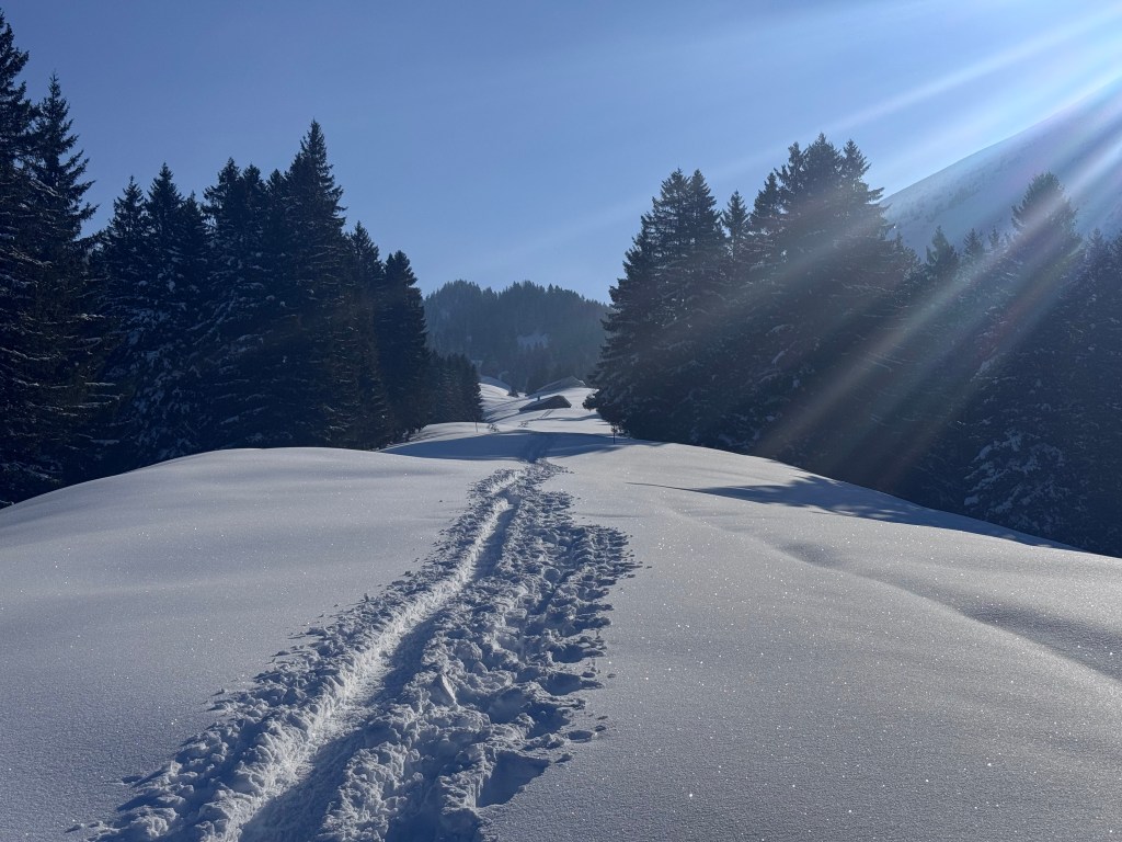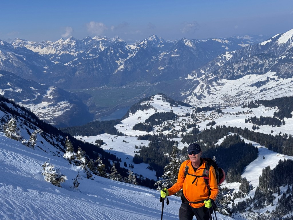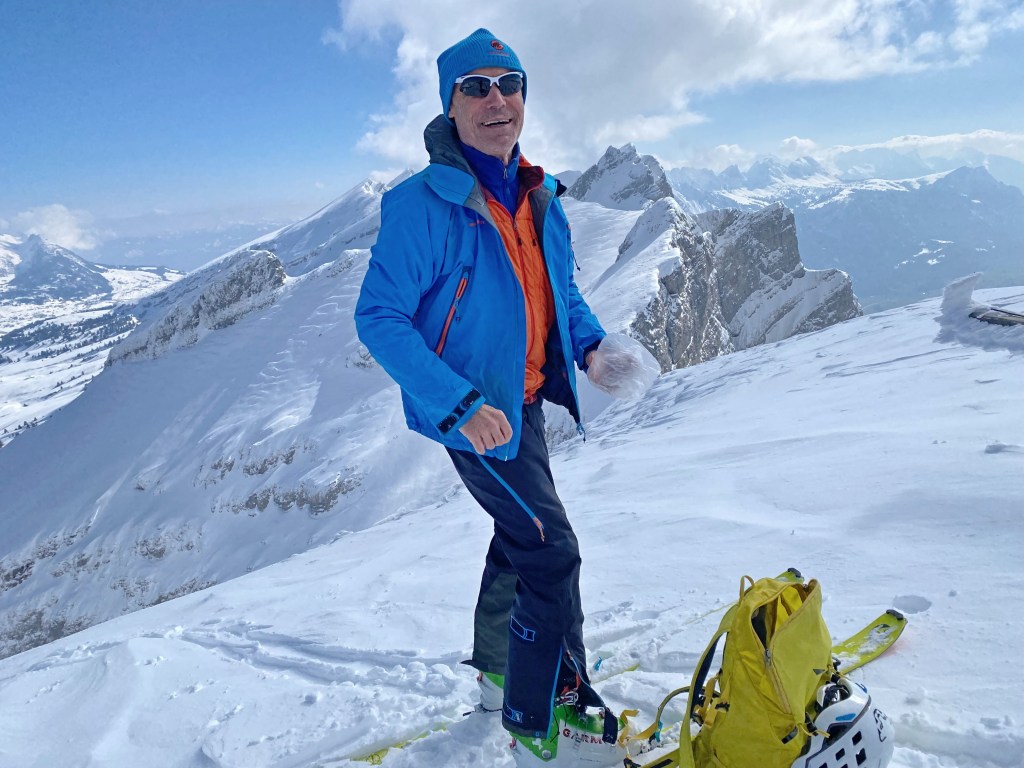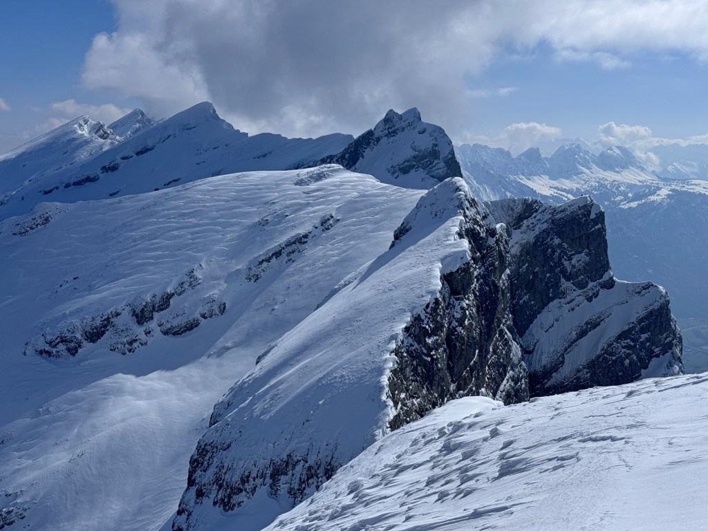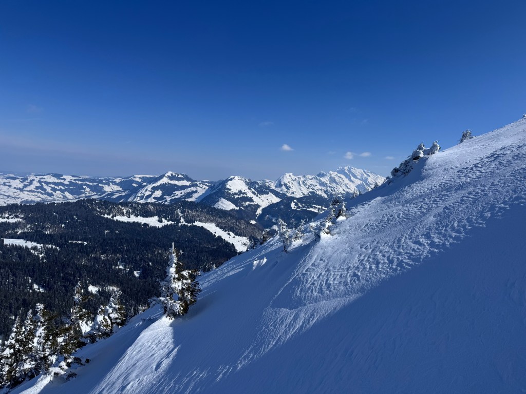 I have been on this steep peak many times in summer and in winter. In winter the peak is seldom climbed as the snow is mostly windblown. In early April 2026, André and myself gave it another try and we were rewarded by top powder conditions!!